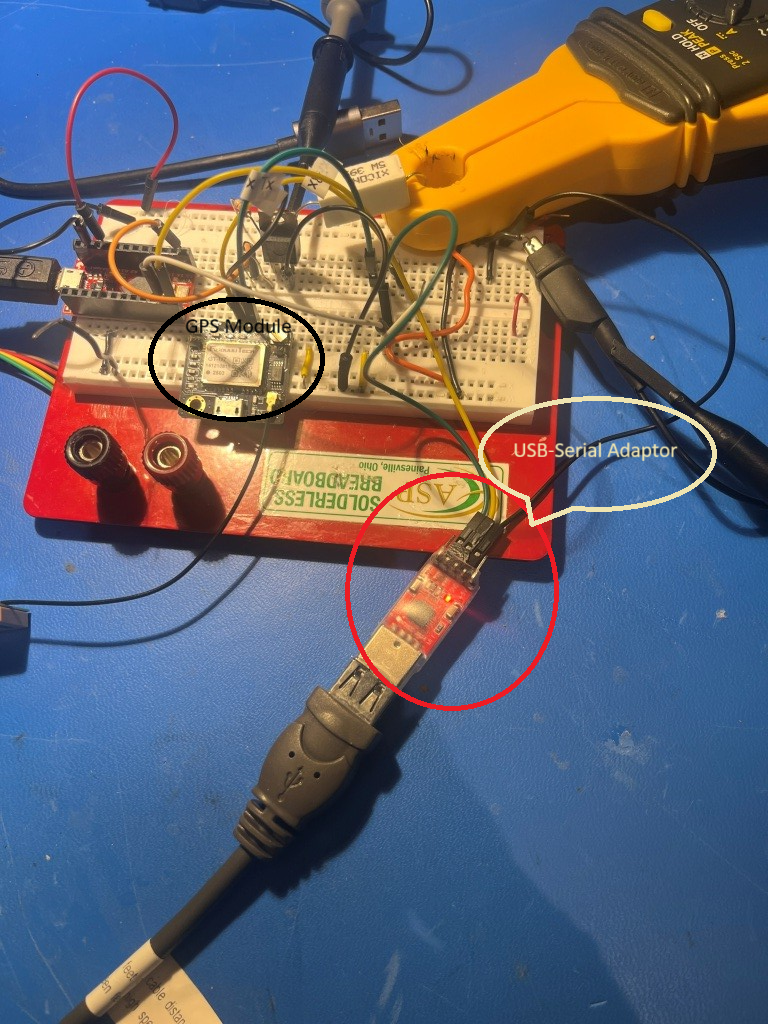 My USB-to-Serial adapter arrived today, and I was able to connect it to my GPS switching board, bypassing the actual GPS. Then I was able to use the NMEA simulator to transmit NMEA messages to the Sparkfun Pro Micro and test the Dash Cam power switch algorithm.