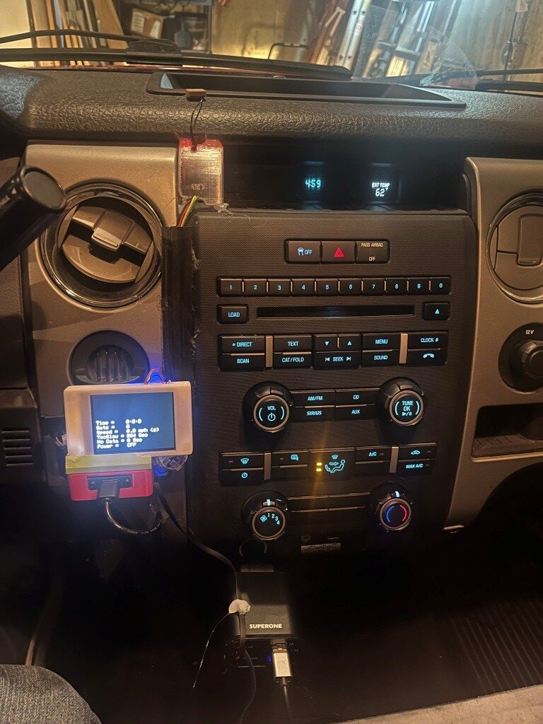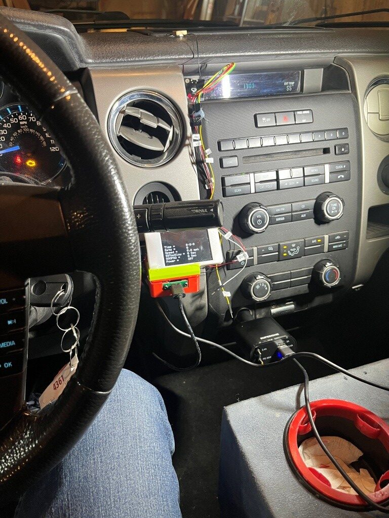 After installing it in my truck, I made a couple of test runs around my little development’s circle, and it seems to be working great. Here are some photos showing the installation in my truck: