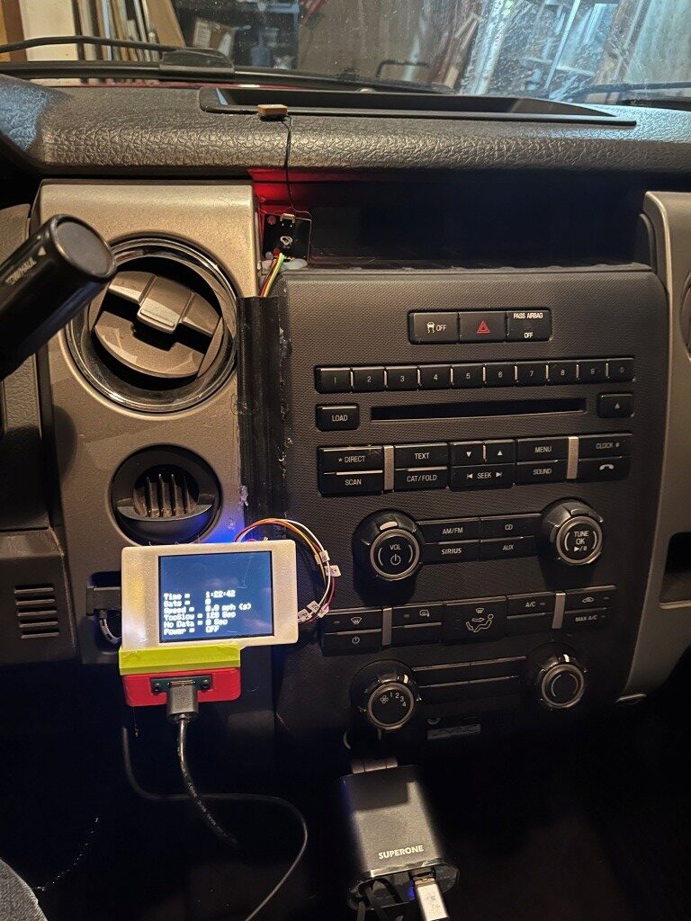 So now we are pretty close to being done; all that is left is to mount the display/controller into its box, mount both the display & power switch boxes onto their custom-printed carrier, and test the whole thing in my truck. The ‘final’ (to the extent that anything I do is actually final) code is shown below: