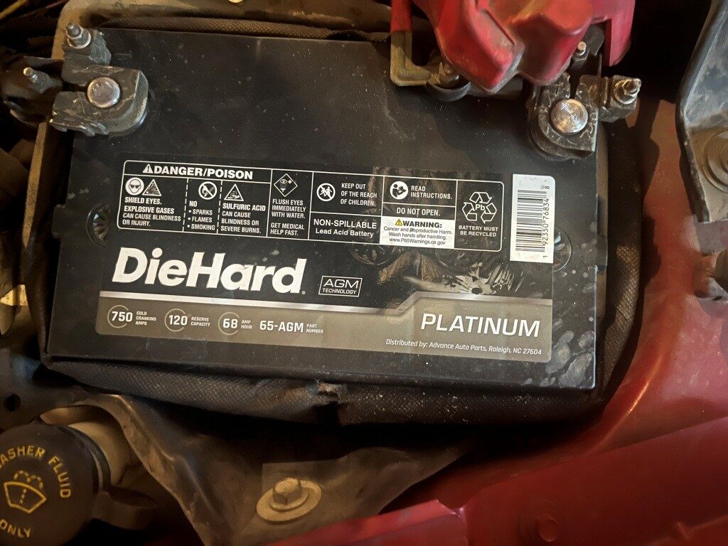 The 12V car battery in this truck is a ‘DieHard’ AGM Technology battery as shown below: