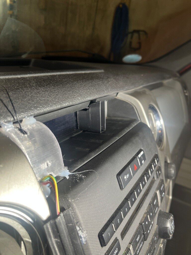 The second thing that happened is I’m trying to figure out how to mount my dashcam power switch project into the ashtray/trailer brake ‘cubbyhole’ (see the photos above). And because I have not only one – but two 3D printers it naturally involves 3D printed parts. I designed and printed a shape that fits nicely into the cavity, and then I’ll need to figure out exactly how the combined assembly can be fastened into the cavity in a way that can be removed easily, if necessary, but also won’t just fall out at the slightest provocation.