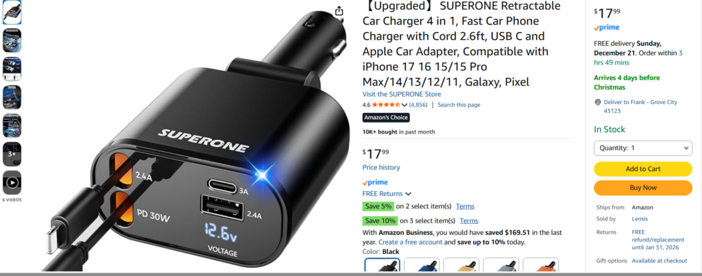A couple of interesting things happened in the last two days. The first thing is I have been cursing at the maker of the SuperONE cigar-lighter automobile power adapter for providing a USB-C retractable cable that doesn’t deliver +5V to power my dashcam switch module.
