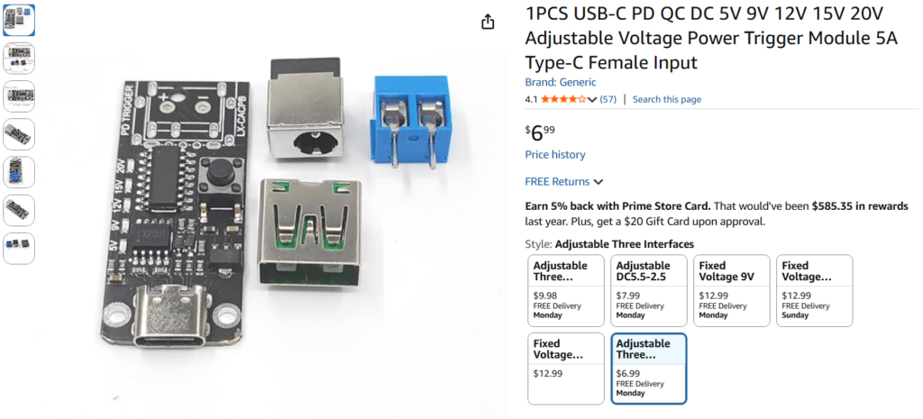 Because of this, I gave the product a ‘1’ review and described my methodology in determining that the retractable USB-C cable just wasn’t providing +5V. This got the company’s attention, and they offered to send me a new one, free of charge. I said, ‘OK’ but if the new one doesn’t work either, then my review will be edited to say that. Well, the new one arrived, and the same thing happened – no +5V to my project box. However, this time I was smart enough to try plugging the cable into my BT headset, and voila – it started charging the headset! Hmm… After some back and forth with Grok I learned that a ‘Power Delivery’ (PD) device doesn’t deliver power to a connection until it is asked to do so. The BT headset did, my cheap USB-C chassis receptacle didn’t – oops! So, I wound up editing my review from a 1 to a 5 and explained why; I suspect that will make the SuperONE folks a lot happier ;). Also, I ordered a different USB-C receptacle – one that has the smarts to request power from the USB-C cable.